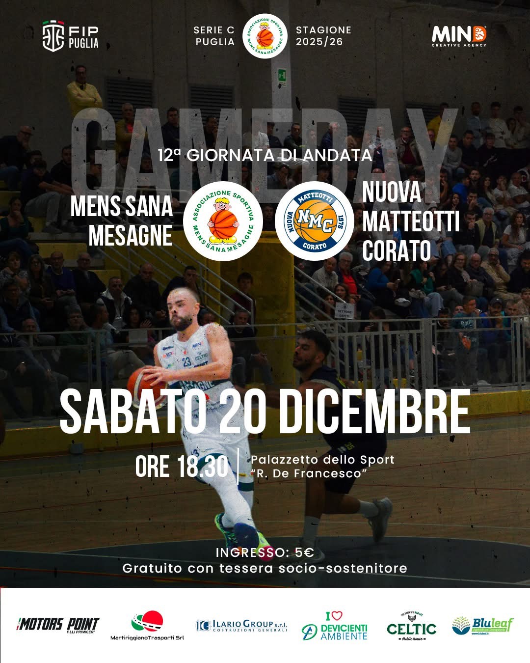 Oggi al Pala Defrancesco c’è Mens Sana Mesagne vs Corato