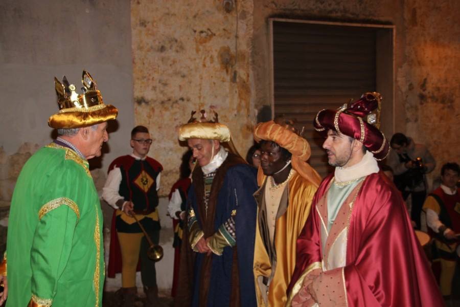 Il corteo, guidato dai Magi, prenderà le mosse da Piazza IV Novembre, dirimpetto al sagrato della Chiesa Madre e attraverserà queste vie: Via Albricci, Via L. A. Aresta, Via degli Azzolino, Piazza Orsini del Balzo, ove i Magi avranno la visione dell’annunciazione a Maria da parte dell’arcangelo Gabriele. Proseguirà, poi, per Vico dei Venereo, Via Manfredi Svevo, Via Guglielmo Marconi, Piazza Vittorio Emanuele II, Via Castello e ritornerà alle 17.30 in Piazza Orsini del Balzo. Qui vi sarà la drammatizzazione di alcuni momenti evangelici: i Magi incontreranno Re Erode alla sua corte e assisteranno a uno spettacolo danzante, dato in loro onore; l’arcangelo apparirà ai Magi e, infine, costoro giungeranno alla Natività del Bambin Gesù, allestita nel portale d’ingresso della Chiesa di Sant’Anna.