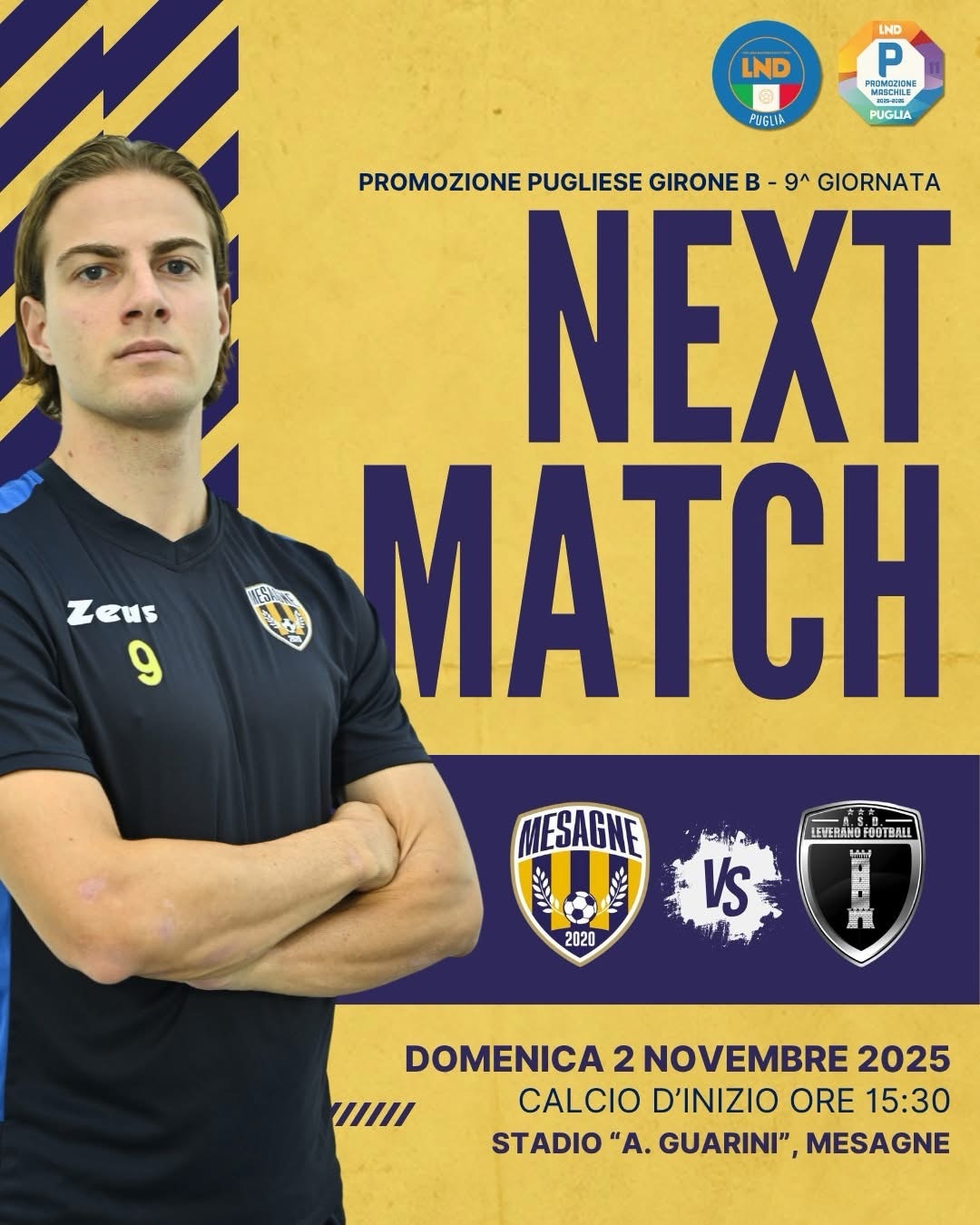 Oggi pomeriggio il Mesagne Calcio gioca in casa. I ragazzi di mister Funaro stanno disputando una grande stagione e non c’è nessuna intenzione di segnare il passo. Al Guarini arriva il Leverano Football serve una spinga da parte dei tifosi per trasportare i ragazzi oltre l’ostacolo dal primo all’ultimo minuto.