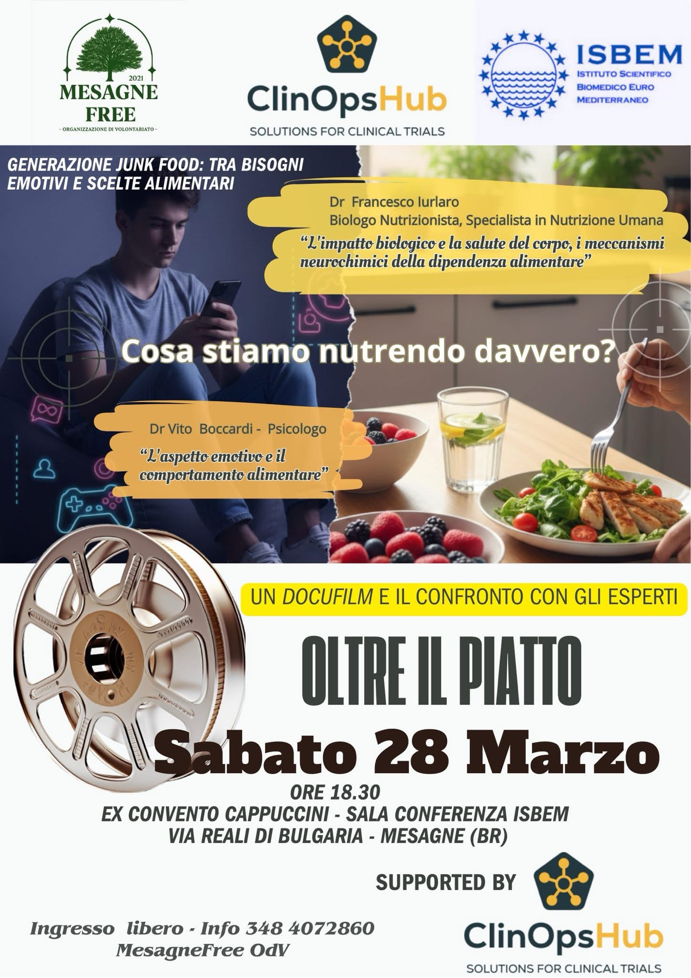 L’organizzazione di questo importante momento di riflessione è stata resa possibile grazie al fondamentale supporto di ClinOpsHub, realtà d’eccellenza nel settore della ricerca clinica, che ha scelto di sostenere attivamente la prevenzione e l’educazione alimentare. Un ringraziamento speciale va inoltre all’ISBEM (Istituto Scientifico Biomedico Euro Mediterraneo) per la grande disponibilità nel mettere a disposizione la propria prestigiosa sala conferenze, confermando il legame tra scienza e territorio.
