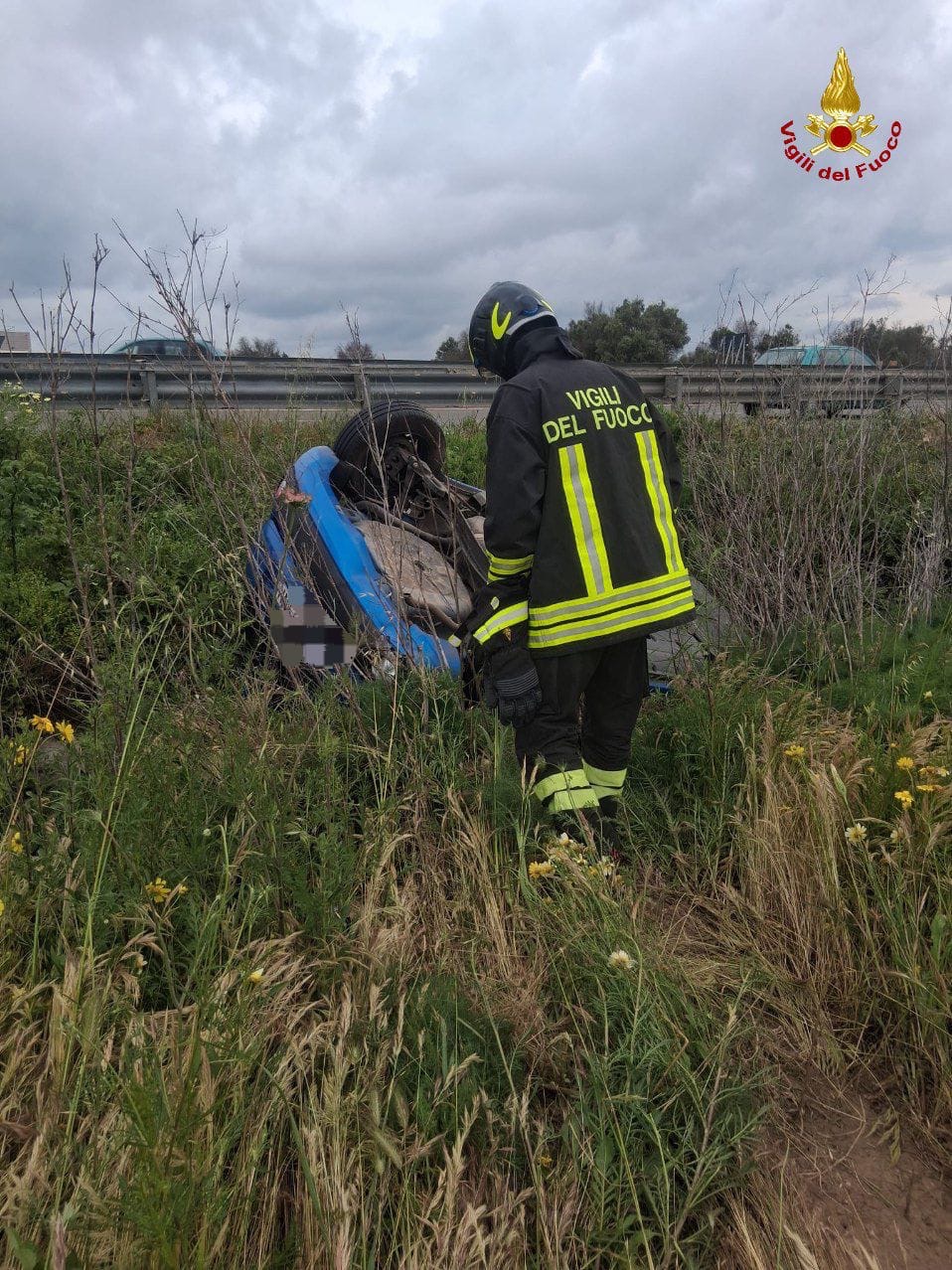 Una squadra dei vigili del fuoco di Brindisi è intervenuta questo pomeriggio sulla complanare della SS 7, in direzione Mesagne, a seguito del ribaltamento di un’auto finita in un canale.