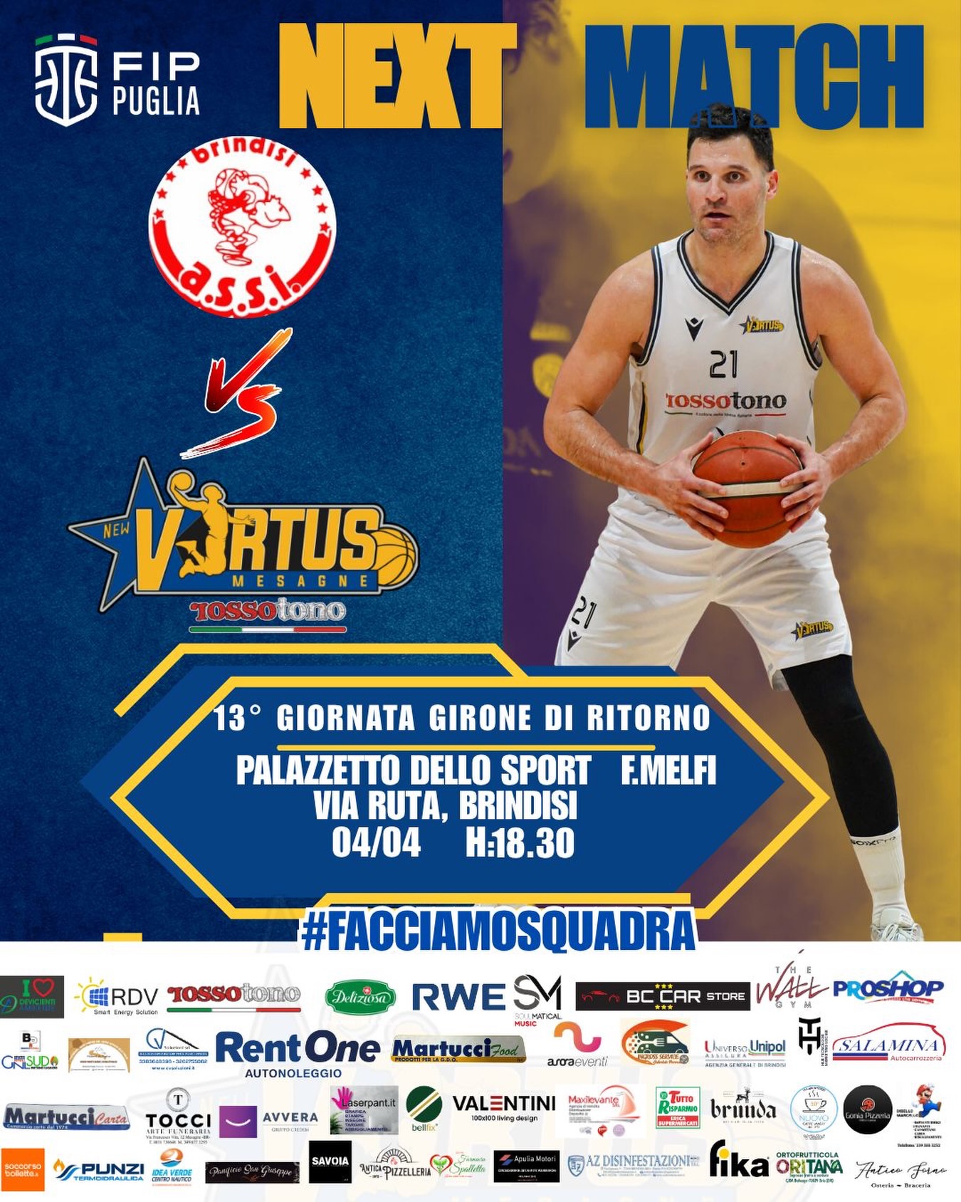 uno sguardo andrà anche al Pala Giannone di Nardò, dove l’A9 di Castellitto incontrerà l’attuale capolista LSB Lecce. É li che si deciderà chi avrà il fattore campo nei playoff. In caso di vittoria dei neretini con un margine tra 1 e 5 punti sarebbe proprio la New Virtus Mesagne ad arrivare sul punto più alto della classifica. Palla a due alle ore 18.30 PalaMelfi di Brindisi. Arbitri della gara i Signori Morelli di Foggia e Loglisci di Gravina