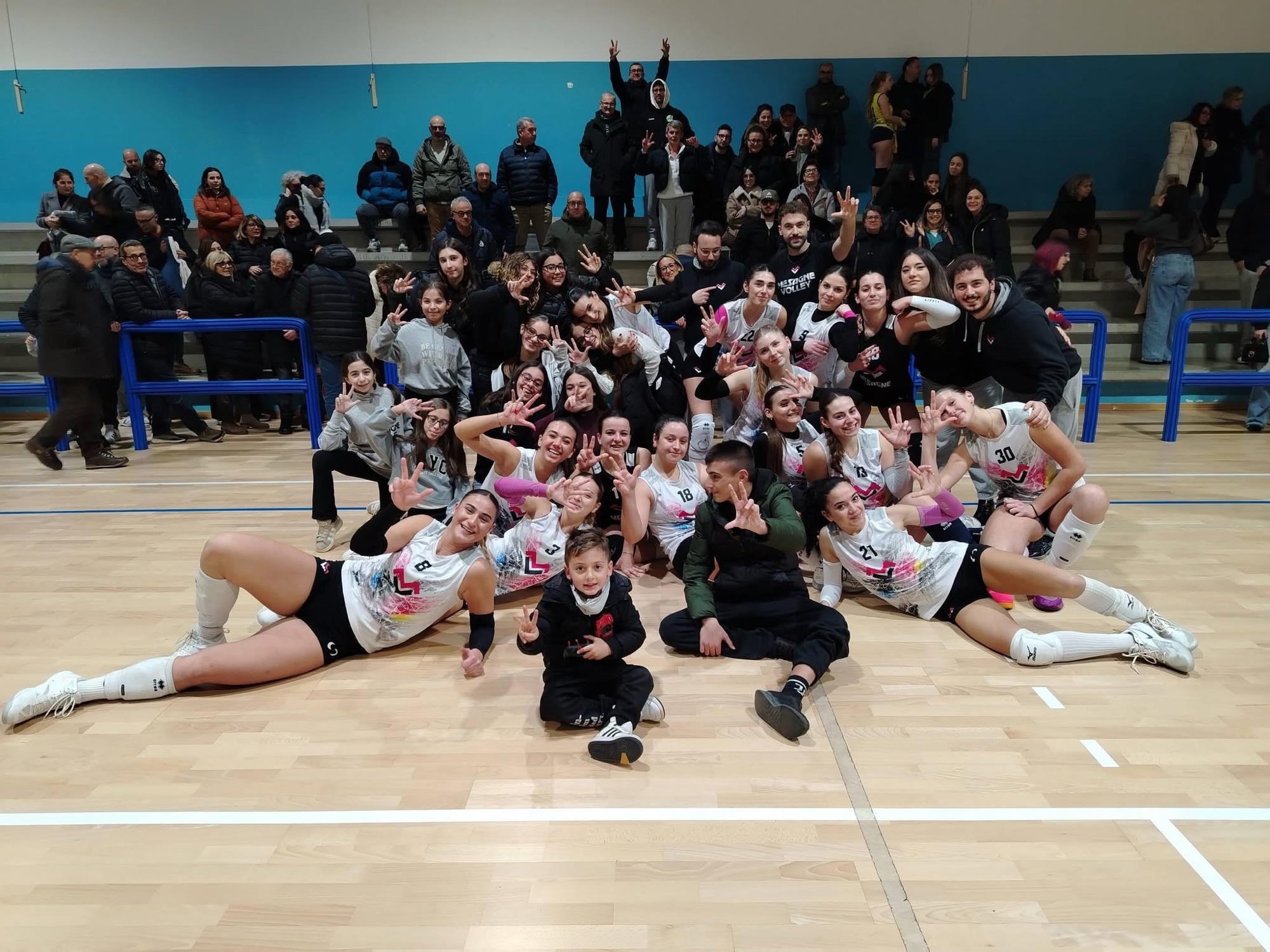 Festa sugli spalti con il folto pubblico presente nella bella palestra del Liceo Scientifico di Mesagne.