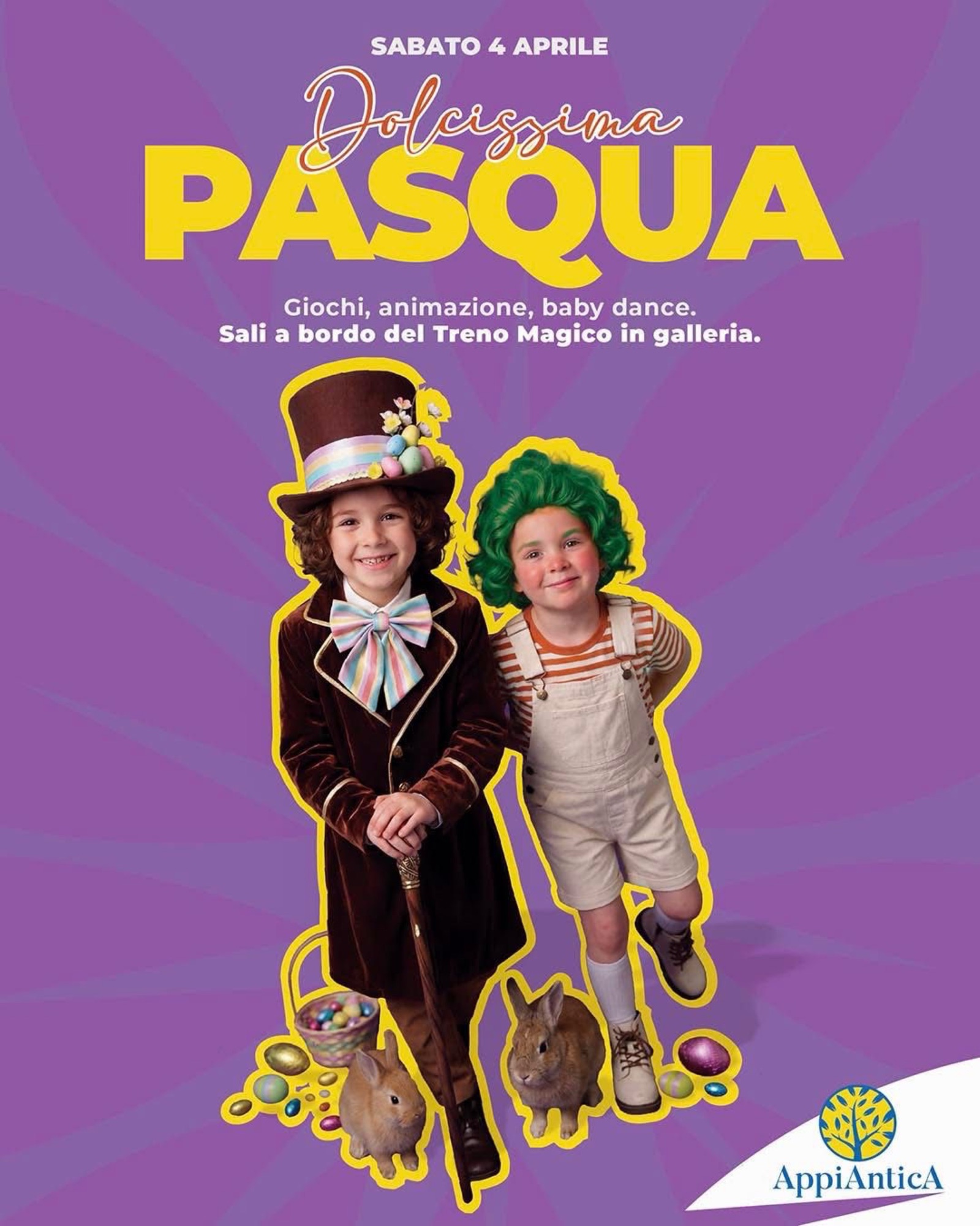 Tra le attrazioni più attese, anche il trenino pasquale che percorrerà i corridoi della galleria accompagnato da un simpatico assistente in costume da spazzacamino. I bambini potranno salire a bordo gratuitamente e vivere un piccolo viaggio nel cuore della “fabbrica” più dolce che ci sia.  L’iniziativa, realizzata dall’agenzia Altamedia per conto della direzione del Centro commerciale AppiAnticA, conferma l’attenzione verso il territorio e la volontà di offrire eventi di qualità capaci di trasformare lo shopping in un’esperienza di intrattenimento per tutta la famiglia. L’ingresso all’evento e tutte le attività sono completamente gratuiti.