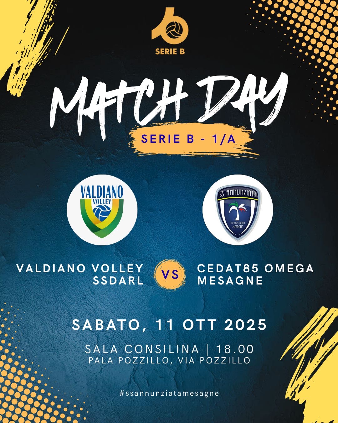 Sabato 11 ottobre, alle 18.00 presso il Pala Pozzillo di Sala Consilina (SA), la Cedat85 Omega Mesagne bagnerà il proprio debutto nel campionato di Serie B 2025-26 contro il forte Valdiano Volley, formazione accreditata dagli addetti ai lavori come una delle maggiori candidate al salto di categoria.