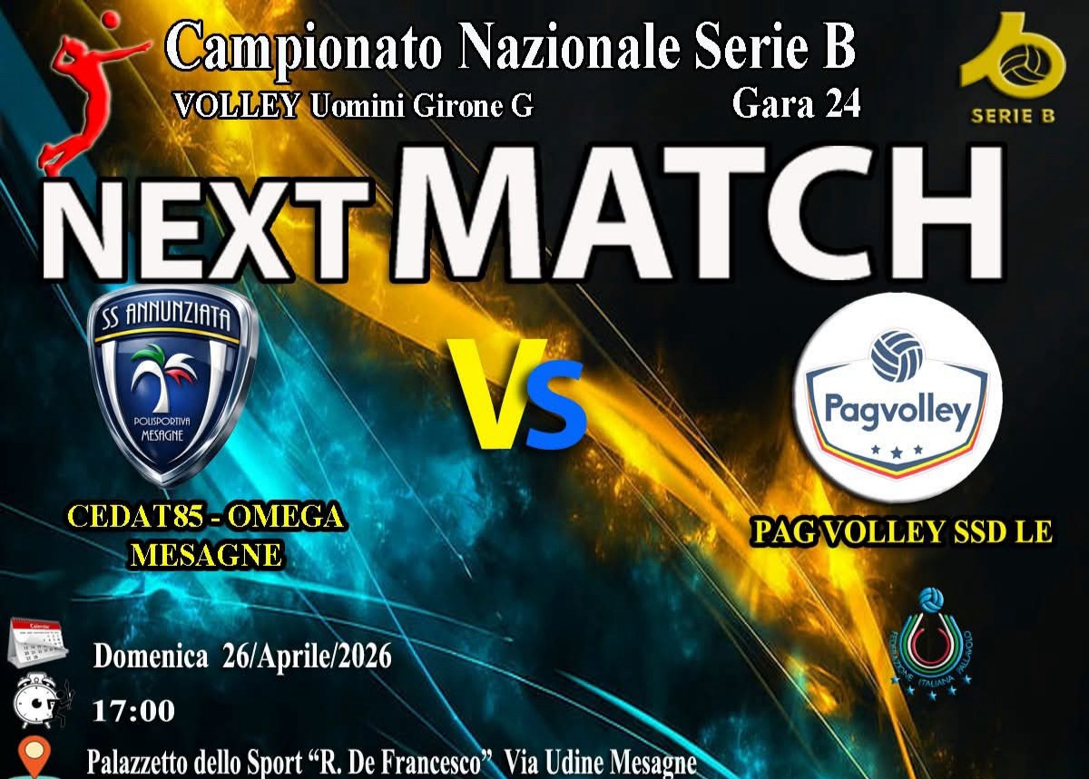 Serie B maschile (girone G), undicesima di ritorno: domenica 26 aprile alle 17:00 al PalaDeFrancesco arriva la capolista Taviano, squadra dominante con 63 punti e 21 vittorie su 23.